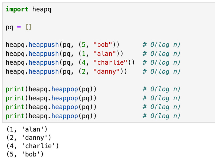 Note — for heapq, each element needs to be in a format (priority, element, ...)