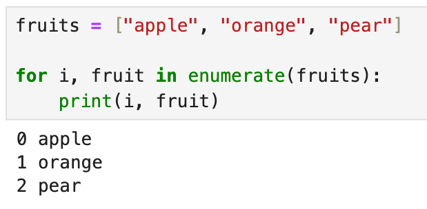 With enumerate(), there’s less index logic we need to deal with, and our code looks shorter and more elegant.