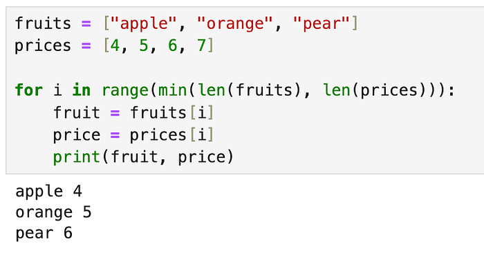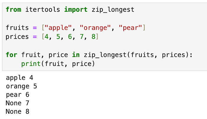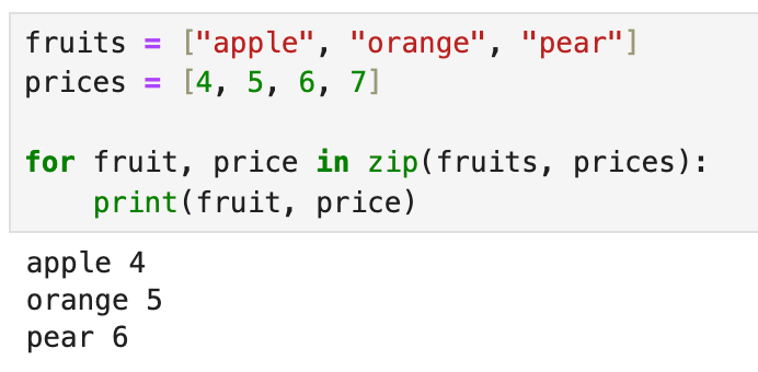 Note — the built-in zip() function stops when either of the iterables run out of stuff to iterate through.