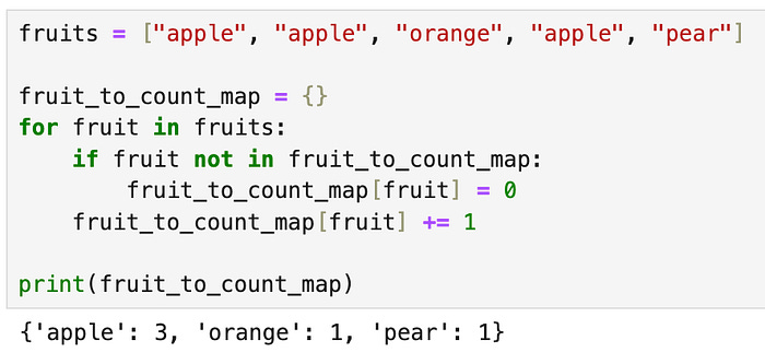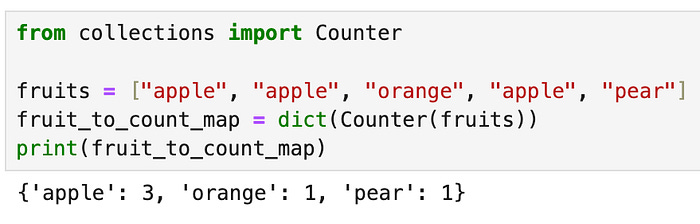 If we use collections.Counter, we don’t have to deal with any logic at all. While this probably saves only a few seconds of development time, it does make code cleaner and shorter.