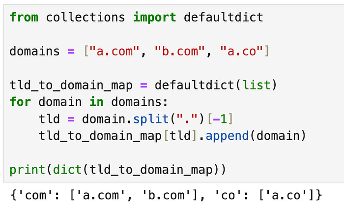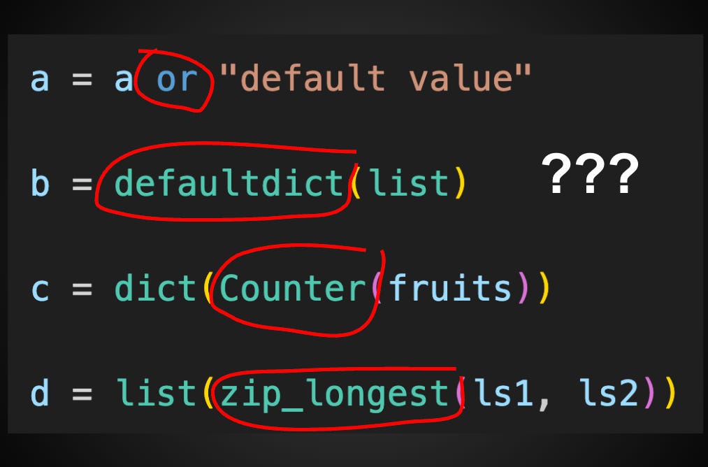 defaultdict(list)initializes values as empty listsdefaultdict(int)initializes values as0defaultdict(set)initializes values as empty sets